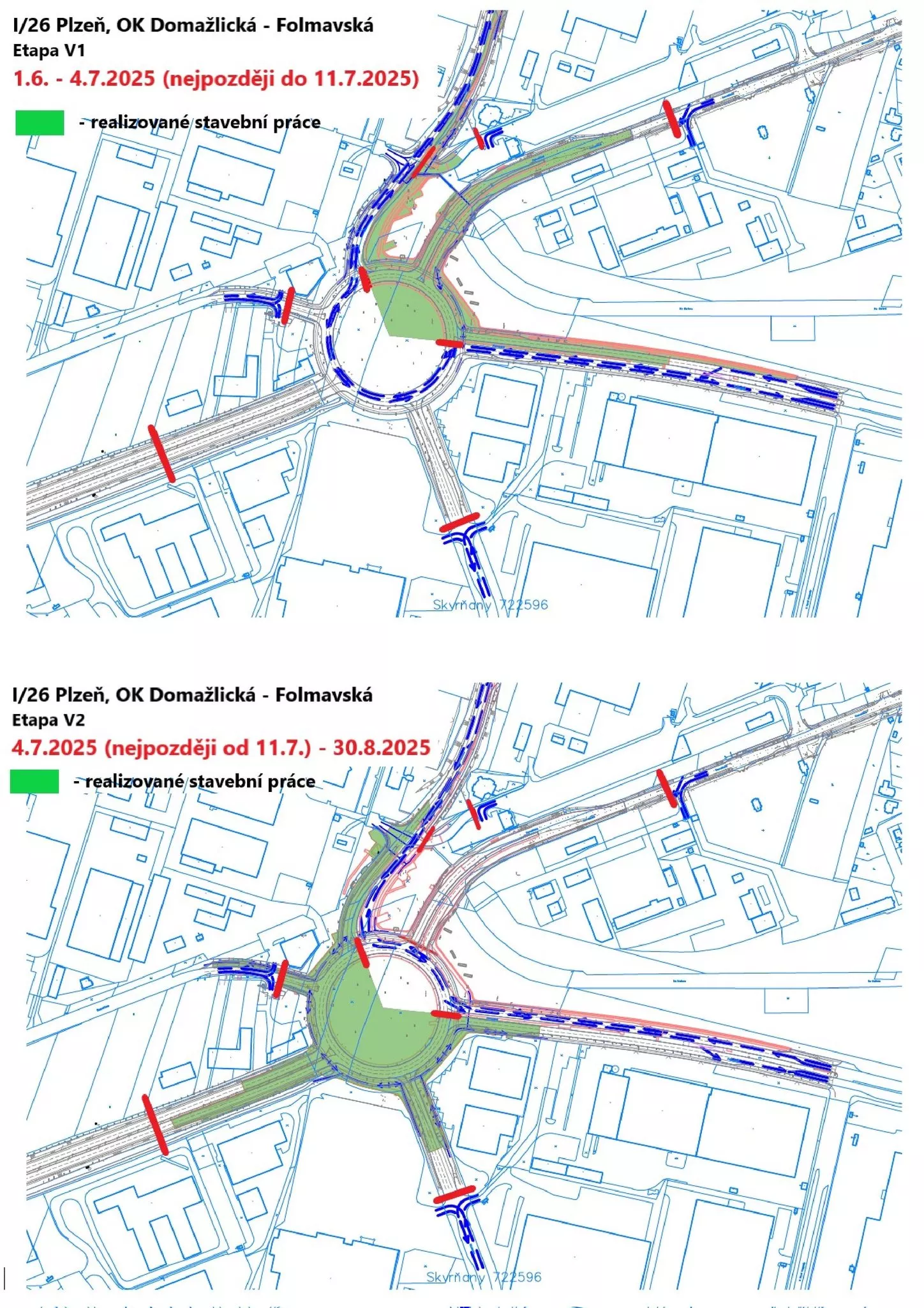 Citelné dopravní omezení kvůli přestavbě křižovatky u plzeňského Makra začalo platit od 1. 6. 2025. Provoz je dvousměrný, uzavřeny zůstavají všechny větve (silnice I/26) kromě ulic Folmavská a Regensburská. Omezení v tomto režimu potrvají do konce srpna. Stavební práce jsou rozděleny do dvou etap. První etapa od 1. června do 4. července (maximálně do 11. července) se zaměří na severovýchodní část křižovatky, kde se plánuje výstavba prstence okružní křižovatky ve směru ulic Folmavská, Domažlická a Regensburská. Druhá etapa proběhne mezi 4. červencem (případně od 11. července) a 30. srpnem, kdy se práce přesunou do jihovýchodní části křižovatky.